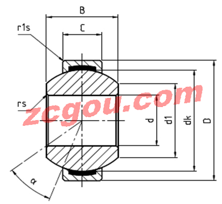 | type | d (mm) | D (mm) | B (mm) | C (mm) | d1 (mm) | dk (mm) | rs (mm) | rs1 (mm) | tilt angle alpha (°) | weight (kg) | basic load rating dyn C (kN) | basic load rating stat Co (kN) | radial clearance CN (m) | d (mm) |