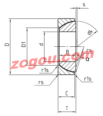 | type | d (mm) | d1 (mm) | D (mm) | D1 (mm) | B (mm) | C (mm) | S (mm) | T (mm) | rs (mm) | rs1 (mm) | tilt angle alpha (°) | weight (kg) | basic load rating dyn C (kN) | basic load rating stat Co (kN) | d (mm) |